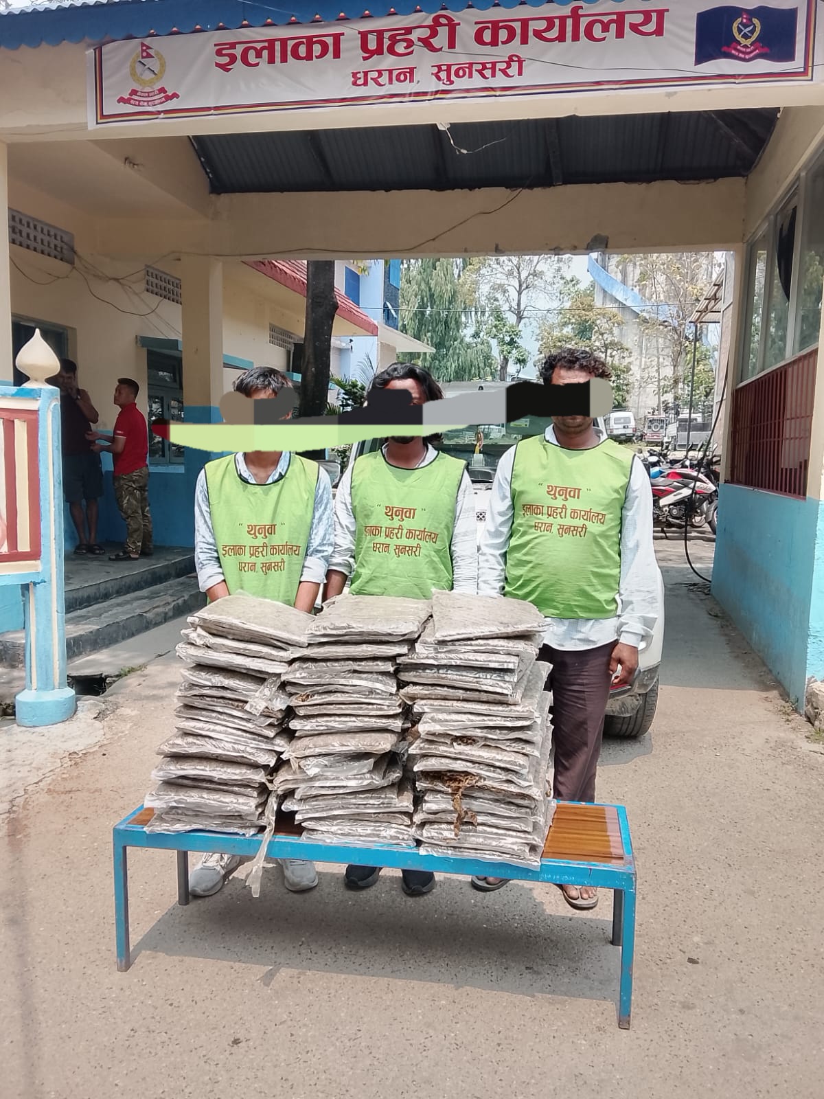 धरान, — सुनसरीको धरान उपमहानगरपालिका–१३ बाट प्रहरीले ५९ केजी गाँजासहित तीन जना भारतीय नागरिकलाई पक्राउ गरेको छ।पक्राउ पर्नेहरूमा भारतको बिहार राज्य, स ...